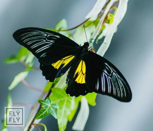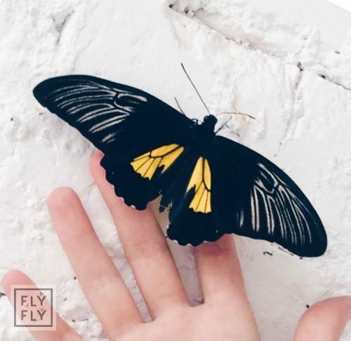Живая бабочка Тройдес Радамантус (Troides rhadamantus) - филиппинская большая бабочка с крылышками до 16 см в размахе. Основной цвет крылышек - чёрный с яркими жёлтыми вставками, а на краях верхних крылышек золото! Стремительный и быстрый, но полёт у Тройдеса можно наблюдать реже, чем у остальных бабочек. Чаще Тройдес просто ходит на лапках в разных направлениях, например, вверх по оконным шторам и шумно машет крылышками. Мы называем Тройдесов бабочками-вертолётами, потому что шум от крылышек напоминает пропеллер :)