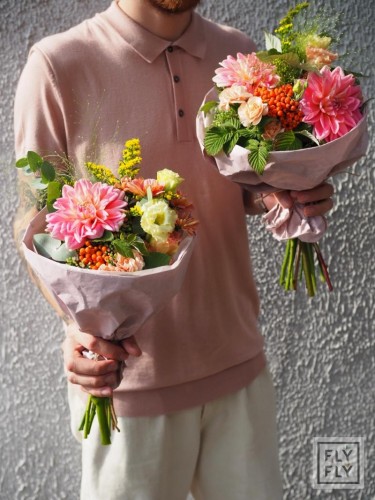 Букет представлен в двух размерах. Диаметр букета размера S - около 22см, M - около 30см.