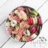 В составе букета: кустовые розочки, гвоздички, хлопок, гиперикум, шамелациум, зелень.